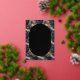 This elegant foil invitation features a sophisticated oval frame with a luxurious black background and striking gold accents, creating an opulent feel. The swirling marbled pattern in shades of dark grey adds depth and texture to the design, while the modern yet classic serif typography ensures clarity and sophistication. Perfect for formal occasions, this invitation exudes grandeur and celebration, making it ideal for weddings or upscale events. Its polished representation style balances intricate detailing with legible text, ensuring your special moment is communicated with both style and substance.