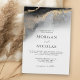 With elegant opulence, this contemporary styled wedding invitation has asymmetrical edging along the top in a modern shimmery gold and black marbled abstract pattern. The chic colour scheme sets the tone for your dream wedding. The look is luxurious, artistic and tasteful. Personalise the text template with your wedding details.