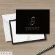 Make a lasting impression with our Elegant Black and Gold Monogram Initials Logo Business Note Card. This sophisticated note card showcases a sleek black background with an elegant business monogram logo with your company name and tagline below in golden typography. The back features space for your note with a smaller emblem in the lower thirds, framed in black, adding to its timeless appeal.