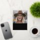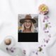 An elegant foil pressed graduation invitation featuring a large photo with graduation cap and minimal editable text on the front. The back has a vertical photo and a place to use to announce the graduate and party details.
