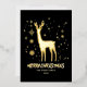 Elegant Black and Gold Reindeer Merry Christmas Foil Holiday Card