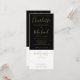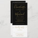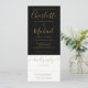 An all in one black and gold wedding invitation featuring modern signature script names and elegant typography. The invitation includes an RSVP card that can be cut off and guest information details. Designed by Thisisnotme©