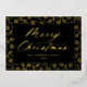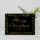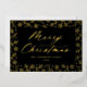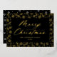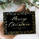 Elegant holiday card with "Merry Christmas" displayed in a gold foil calligraphy script with a gold foil snowflake and pine branch border on a black background. Personalise the front of the non-photo holiday card by adding your name and the year. The back of the modern holiday card features your custom message with a beautiful snowflake pattern.