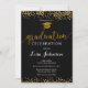 Elegant Black and Gold Sparkle Glitter Graduation Invitation