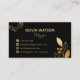 The gold embellishments surrounding the text provide a sense of elegance and refinement, making this business card useful and aesthetically pleasing.
