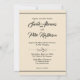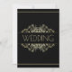An Elegant Black and Gold coloured Wedding Invitation. The front is decorated with gold coloured text: WEDDING, and gold coloured accents on a black background. The reverse text includes your full invitation details on a soft linen coloured background, with black trim. To personalise, simply insert your text into our easy template, replacing the sample text.
