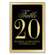 features title "Table" in gold elegant script font style and table number, wedding details in gold serif font style with gold border on black background.