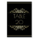 An Elegant Black and Gold Wedding Table Number Card. This card is designed with gold coloured text including: TABLE 20, with gold coloured accents and border trim. Design repeats on the reverse. To personalise, simply insert a single number into each card ordered, replacing the sample text.