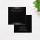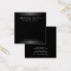 Elegant, square, black earring display card with grey satin gradient borders and template fields for your business information and custom logo.