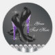 Pretty purple leopard high heel shoes with elegant black and white diamond sparkle background birthday party stickers. You can add the text of your choice, or delete it.