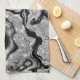 Elegant Black and Silver Glitter Agate Pattern Tea Towel