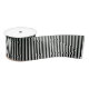 This modern satin ribbon features an elegant silver and black striped pattern.