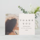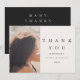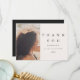 This modern and minimal black and taupe wedding bridal shower thank you card features elegant lettering and one photo.