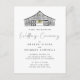 A unique minimalist design featuring a one of a kind rustic barn illustration with yellow string lights, modern calligraphy and fonts. This elegant barn private wedding ceremony card is perfect for a cosy intimate gathering. The backside has the couple's names and website address for additional details.