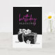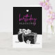 ELEGANT SIMPLE BLACK AND WHITE HAPPY BIRTHDAY CAKE SLICE WITH FLOWERS AND PINK AND WHITE TEXT.