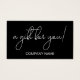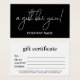Beautiful black and white script Gift Certificate Business Card