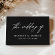 This elegant wedding guest book is perfect for stylish, modern weddings. The design features "the wedding of" displayed in white calligraphy with your names and wedding date shown below on a black background. Add your custom text to the spine of the minimalist wedding guest book. The back of the guest book features your horizontal engagement photo.