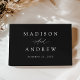 This elegant wedding guest book is perfect for stylish, modern weddings. The guest book features your names and wedding date in white lettering with a black background. Add your custom text to the spine of the minimalist wedding guest book. The back of the black and white guest book features your horizontal engagement photo.