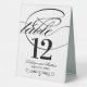 Each table number card must be customised via Personalise it" and individually added to the shopping cart. Elegant black and white design includes a flourished monogram and calligraphy accents on the front and back sides of the card (two-sided design).