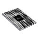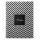 Personalised spiral notebook features black and white chevron pattern with custom name in white handwriting font and monogram in dark grey shade in black square frame.