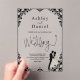 This elegant black-and-white acrylic wedding invitation is perfect for a modern wedding. The simple design features elegant black calligraphy, a chic black frame, and a bride-and-groom illustration on a clear transparent background. The invitation card includes the wedding details on the back instead of paying for a separate enclosure card.