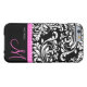 Elegant black and white Damask with Pink monogram Case-Mate iPhone Case
