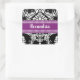 Elegant Black and White Damask with Purple Accents Square Sticker