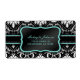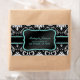 Elegant Black and White Damask with teal blue address labels.