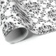 Elegant wrapping paper printed with a black damask pattern on a white background