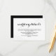 Elegant glam black text and white background wedding guest details card with delicate black dots on the front and plain black back of card.