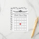 Elegant black and white flower floral wedding bridal shower bingo game card. It showcases a small flower with leaves in black and a red hear. The back includes a black and white pattern with small flowers and leaves.