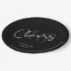 Make the celebration feel instantly elevated with these elegant black party plates featuring a bold white “Cheers” script and a subtle oversized “40” in the background. The clean, modern design is perfect for a chic 40th birthday, cocktail-style gathering, or black-tie inspired milestone celebration. Personalize the text at the bottom with a name, date, or short message to coordinate seamlessly with your matching party suite.