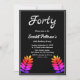 Elegant Black And White Glow Leaves 40th Birthday Invitation