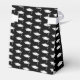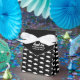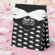 A pattern of white graduation caps appears on this black favour box. Custom white text can be personalised with graduate's name and class year.