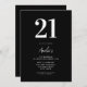Elegant Black and White Modern 21st Birthday Invitation