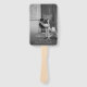 Classic style wedding program hand fan featuring a simple yet elegant design with your event details in traditional serif fonts over your favourite photo.