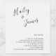 Simple black and white wedding label with your names in an elegant handwritten script at the top left and a list of fun facts about you in right alignment at the bottom right. The chic hand lettering adds a romantic touch to this minimalist design. Create your own custom wine bottles for wedding favours your guests will want to keep.