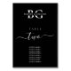 A minimalist black and white monogram initials wedding design. A simple design that uses the bride's and groom's initials and names to create an elegant classic monogram. A charming black and white minimalist monogrammed design with classy script typography. An elegant black and white monogram initials themed wedding invitation table number design with modern elements. Matching wedding invitations and other stationery items are also available. Customise the number and purchase each tables number individually according to how many table numbers you need.
