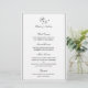 Traditional and classy wedding menu printed on a sheet of paper for an inexpensive option. This menu features a simple design with your two initial monogram, names and course headers in an elegant calligraphy. This classic black and white design is perfect for a formal wedding in the fall / autumn. These cheap wedding menus are printed on sheets of paper for a budget friendly option.
