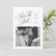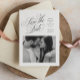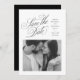 This elegant one-photo wedding save the date features a beautiful "save the date" script type treatment, simple custom text and a large horizontal photo. This beautiful save the date design is a great way to share an engagement photo and tell family and friends wedding details. The back features an elegant matching black with soft dots along with a customizable message and a qr code for your wedding website. This original card by Lea Delaveris Design is available in more styles and colors in the collection and also as a digital save the date download.