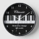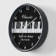 Elegant black and white piano keys wall clock. Personalise with name, monogram, quote or slogan. Custom background colour. Unique Birthday gift ideas for piano player, pianist, classical music teacher, musician, instructor, producer, artist etc. Classy time clock for office, school, living room, kitchen, studio, bedroom, bar, cafe etc. Music can change the world... Ludwig van Beethoven.
