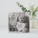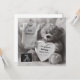 Celebrate your beautiful news with our stunning black and white pregnancy announcement! This charming design features a fluffy teddy bear holding a heart-shaped letter board, paired with a cute baby bodysuit hanging nearby.