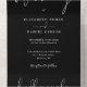 All in one wedding invitation featuring elegant typography on a black background. The invitation includes a perforated RSVP card featuring a QR code. Designed by Thisisnotme©