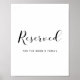 Elegant black and white Reserved wedding sign