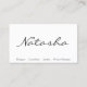 Plain, Simple, Modern, Elegant Classy Two Sided, White with Black Script Font, First Name Text Only, Professional Business Card ideal for a Female Designer, Interior Decorator, Makeup Artist, Make up, Cosmetologist, Hairdresser, Hair Stylist, Project Manager, Event Planner, Wedding Planning, Public Relations Consultant, Occupational Therapist, Dentist, Psychologists, Psychiatrist, Realtor or Real Estate Agent, Attorney, Lawyer, Solicitor, Paralegal, Chiropractor, Cleaner, Veterinarian, Interpreter & Translator,Sales Representative / Rep, Housekeeper, Social Worker and many other professionals.