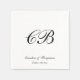 This personalized wedding napkin features a bold black monogram with elegant script names and date beneath for a crisp, timeless look. A classic choice for cocktail hour, dinner service, or dessert tables, it adds a refined touch to your reception. Designed to coordinate seamlessly with traditional or modern event styles.