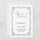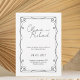 Graceful and timeless, this elegant black and white wedding invitation features flowing script names framed by a delicate ornamental border. The refined swirl details create a soft, romantic frame that draws the eye inward, beautifully highlighting your names and wedding date. The balanced layout blends classic charm with modern simplicity for a look that feels both sophisticated and enduring.