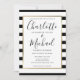 Elegant Black And White Stripe Script Gold Wedding Invitation