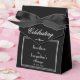 Elegant Black And White Gift Favour With Personalised Bride and Groom Names Cool Wedding Favour Box. A beautiful classic look with elegant stylish decorative fancy white script on a chic black background. Click personalise this template to customise it with your Bride and Groom's names, and the marriage date quickly and easily. Elegant Black And White Wedding Favour Box, is part of the Black And White Wedding Collection in this store, which offers a full range of unique personalised wedding items. 30 Day Money Back Guarantee. Ships Worldwide fast.