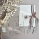 This elegant black on acrylic wedding invitation features a combination of serif and script fonts. Feel free to customise the wording for your occasion. Complementary items are also available.